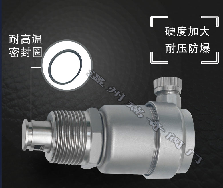 1.性能可靠。排放裝置材料使用PK-EP。和所有已知的合成材料相比,PK-EP有最好的性能和最高的可靠性。PK-EP能承受高溫(比排氣閥.的工作溫度高很多)。O型密封圈使用優化材料EPDM,保證在高溫下O型密封圈仍然有良好的彈性和運行可靠性。排氣閥閥芯的內部彈簧采用特殊的材料,并采用鍍鎳不銹鋼,防止氧化(如果氧化會影響閥芯的運動);排氣閥的排氣機制非常可靠,在出廠前每只閥均通過排氣實驗和壓力密封實驗。單個的組件均由高精度鑄