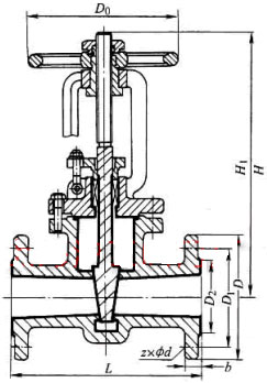 Z41F46 型 PN16、PN25 氟塑料襯里楔式閘閥:手動、法蘭連接、明桿楔式剛性單閘板,閥座密封面材料為聚四氟乙烯,公稱壓力 PN16~PN25,閥體材料為灰鑄鐵襯氟塑料的閘閥。 | ||||||||||